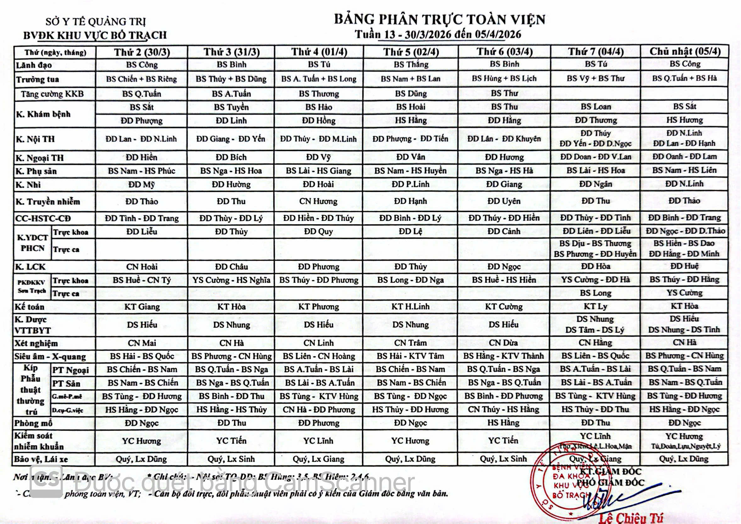 LỊCH TRỰC TUẦN 9(TỪ 02/03/2026 ĐẾN 08/03/2026) 3/9/2026 10:38:35 AM