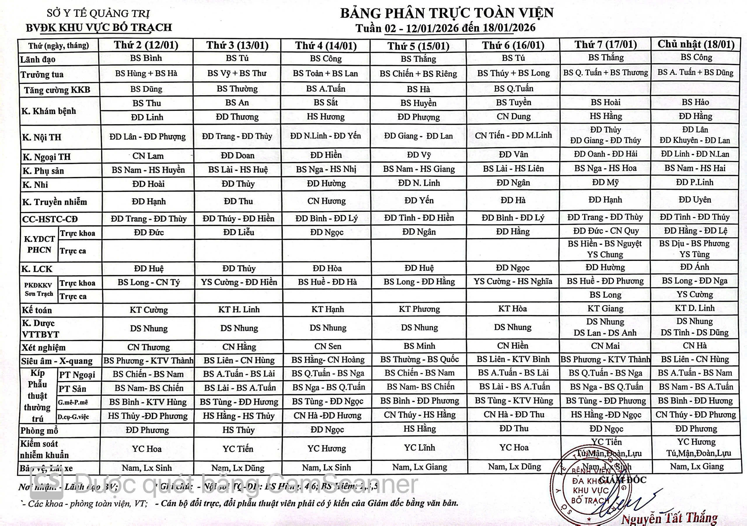 LỊCH TRỰC TUẦN 1(TỪ 05/01/2026 ĐẾN 11/01/2026) 1/5/2026 4:14:47 PM