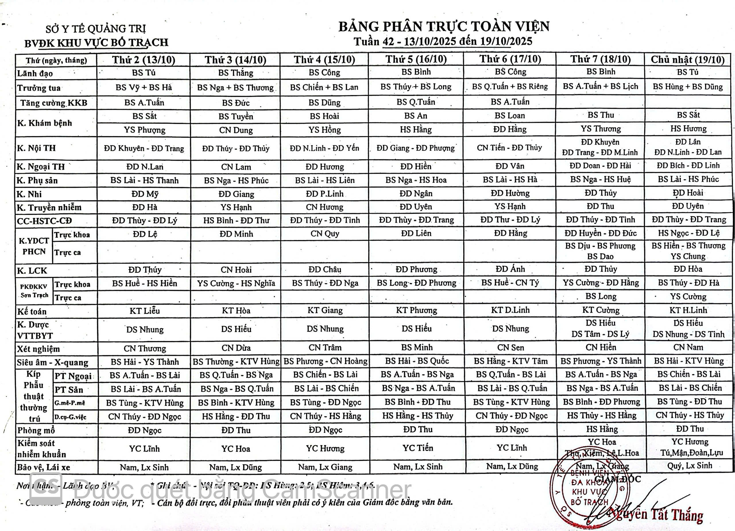 LỊCH TRỰC TUẦN 41(TỪ 06/10/2025 ĐẾN 12/10/2025) 10/16/2025 3:30:38 PM