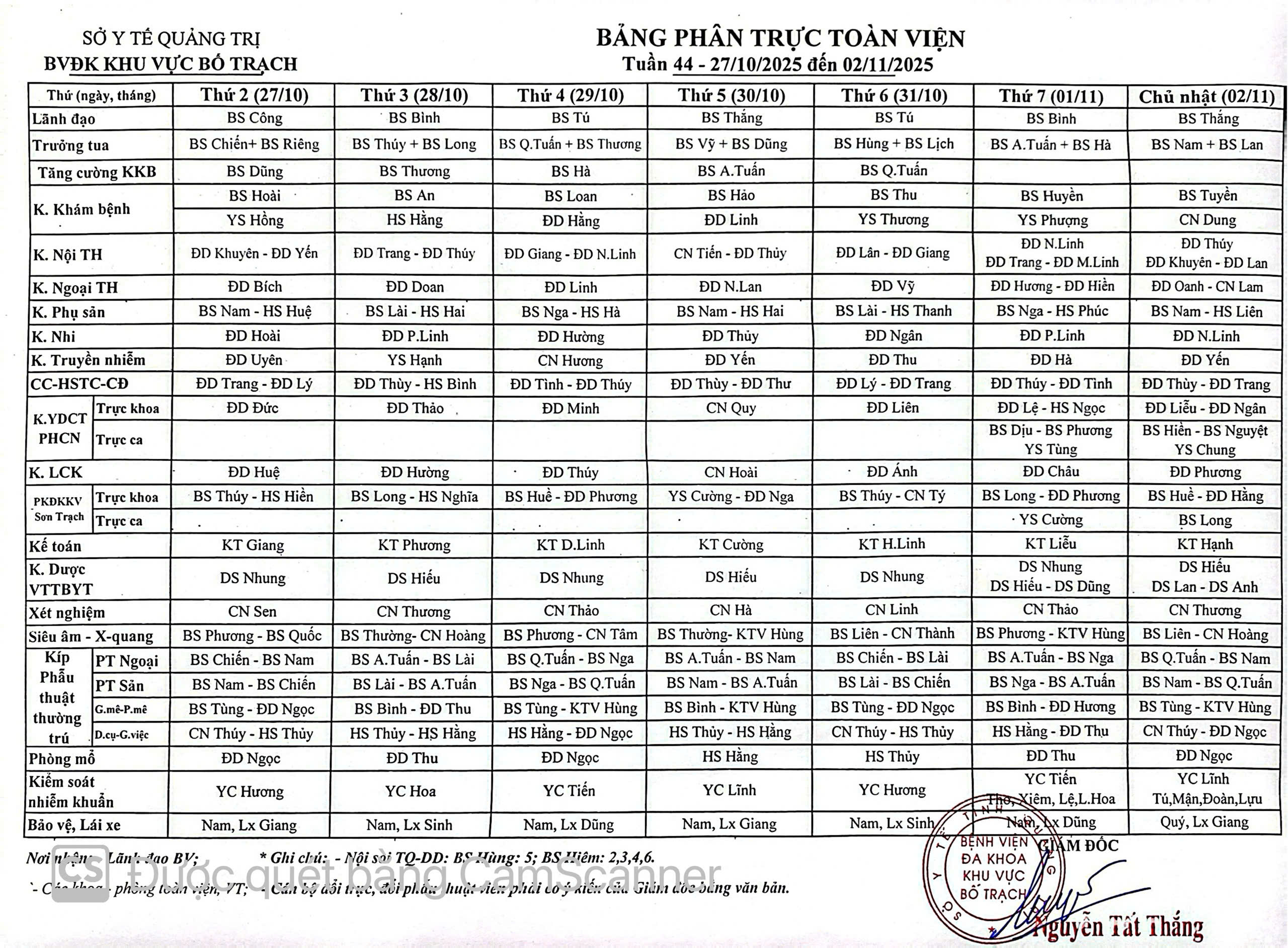 LỊCH TRỰC TUẦN 43(TỪ 20/10/2025 ĐẾN 26/10/2025) 10/31/2025 4:57:41 PM