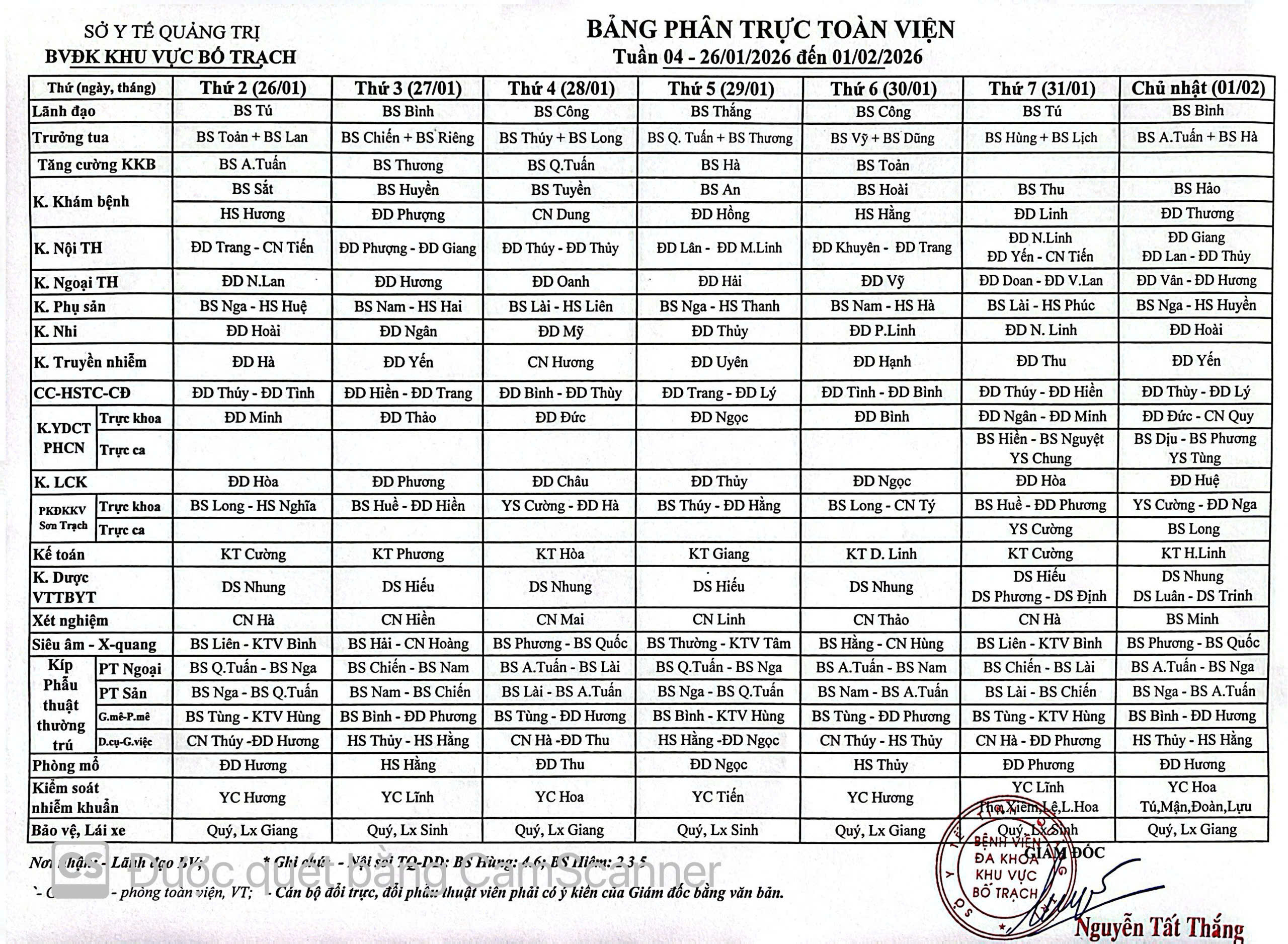 LỊCH TRỰC TUẦN 1(TỪ 05/01/2026 ĐẾN 11/01/2026) 1/5/2026 4:14:47 PM